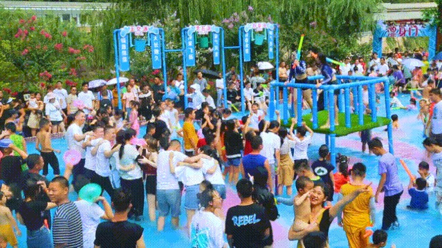 随处可见背着水枪,提着水桶的“战士”们,他们或突然发起“袭击”,或顽强对抗“敌方”,高压水泡枪、欢乐翻水桶、湿身挑战门的加持下,在动感音乐与激情舞蹈的伴随下,快乐持续加倍,彻底解放天性!
